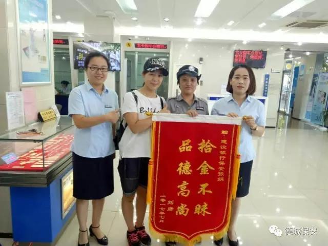 7月10日,德州市市民劉彥女士將一面寫有“拾金不昧、高尚品德”的錦旗送給德州市恒威安保服務有限公司人防三大隊駐四新支行保安張娟處,由衷地感謝保安員張娟,對客戶認真負責,拾金不昧的高尚精神。
