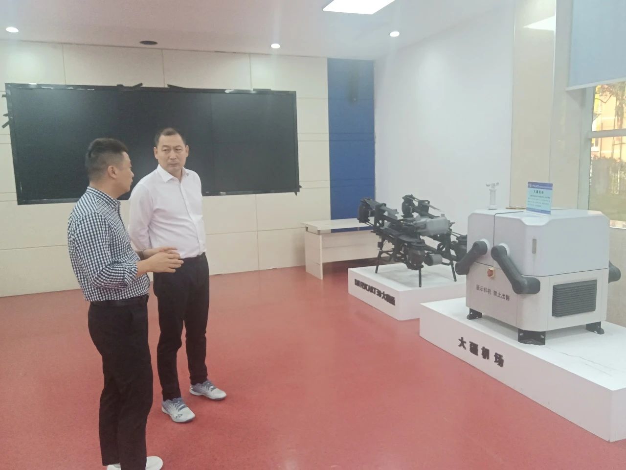 考察組第一站前往安徽省空安信息技術有限公司(以下簡稱“空安信息”),空安信息技術研發總監黃超和銷售總監錢亮熱情接待了考察組。黃總監詳細介紹了公司發展及當前業務開展情況,并安排技術人員進行無人機巡檢演示,雙方就此進行了深入地交流,并表示將進一步加強合作,利用科技安全賦能,推動城市安防提質增效,促進構建空地立體協同巡防體系,持續提升公司安保防范能力。